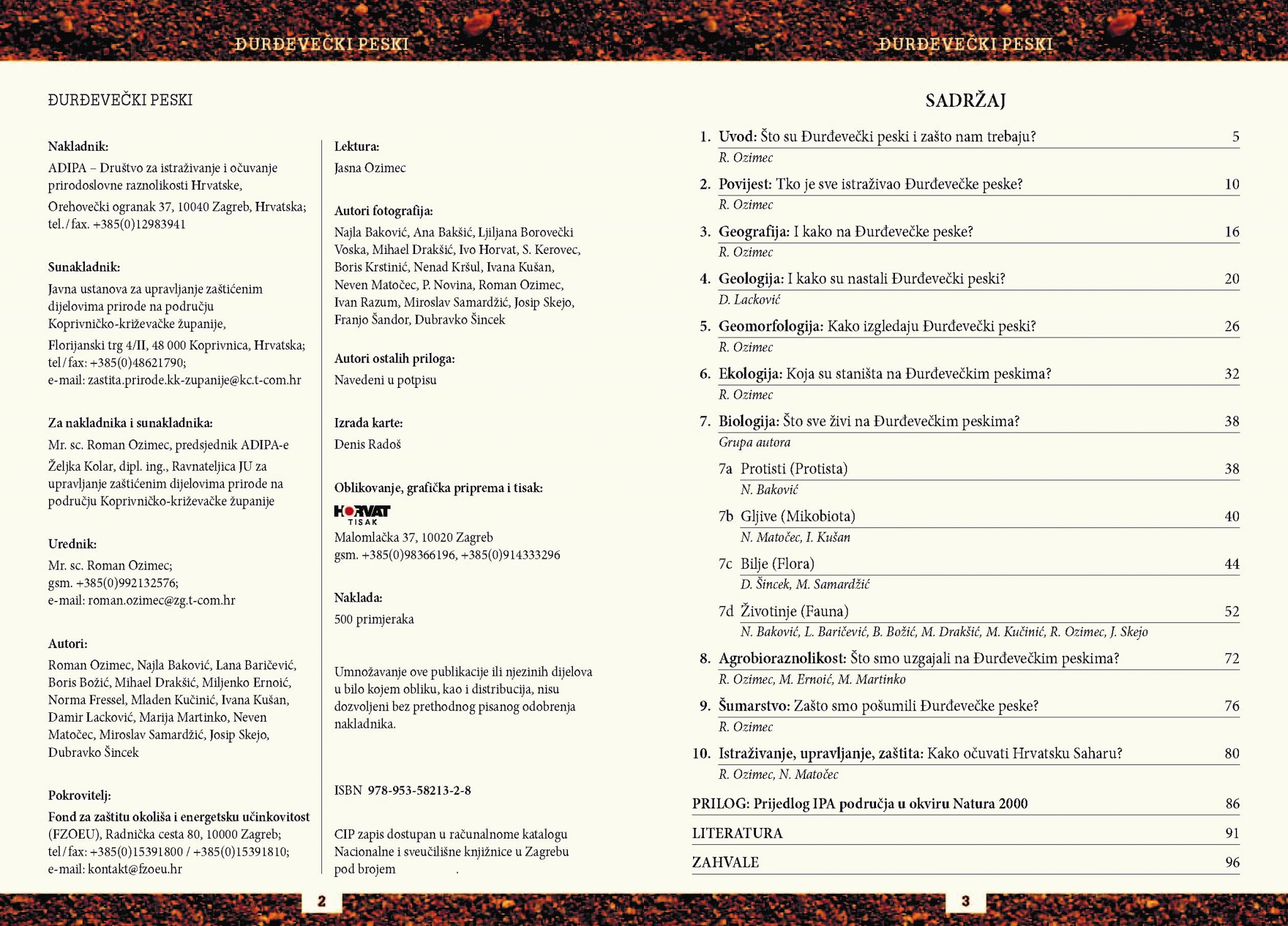 Đurđevečki peski (2016.). (ref. OZIMEC, R., BAKOVIĆ, N., BARIČEVIĆ, L., BOŽIĆ, B., DRAKŠIĆ, M., ERNOIĆ, M., FRESSEL, N., KUČINIĆ, M., KUŠAN, I., LACKOVIĆ, D., MARTINKO, M., MATOČEC, N., SAMARDŽIĆ, M., SKEJO, J., ŠINCEK, D., 2016: Đurđevečki peski. ADIPA – JU za upravljanje zaštićenim dijelovima prirode na području Koprivničko-križevačke županije, 96 pp., Zagreb.)